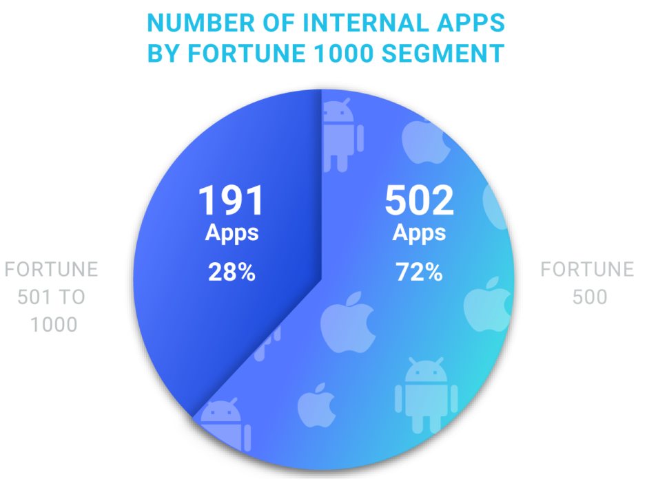 Enterprise mobile development and innovation aimed at the workplace has increased significantly. A broad range and diversity of Android and iOS apps designed for internal work has emerged on the public app store. Below, we highlight the key findings from our research on the mobile apps published by the Fortune 1000 to the app store. Our goal is to help organizations design mobile strategies in 2020 and beyond.