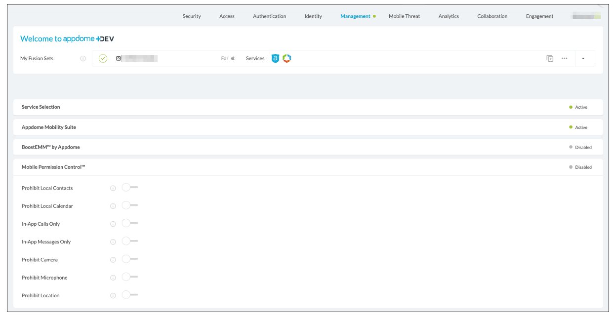 Block App Permissions to Camera is part of Mobile Permission Control which can be found in the Appdome Mobility Suite under the Management tab.