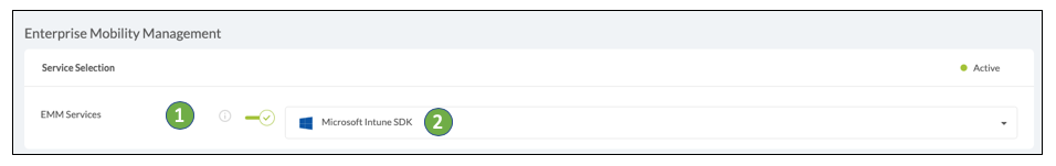1. Enable or turn “ON” EMM Services and open the drop-down list.