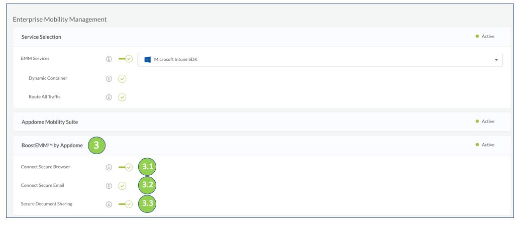 Configure the Intune Policy settings to activate your Appdome BoostEMM features