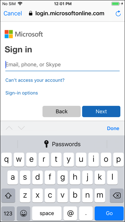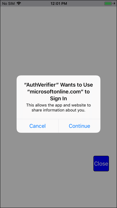 - Tap UIWebView. If your Azure environment is set up and the Fusion Set was configured correctly, you should see a popup, leading to a login page: