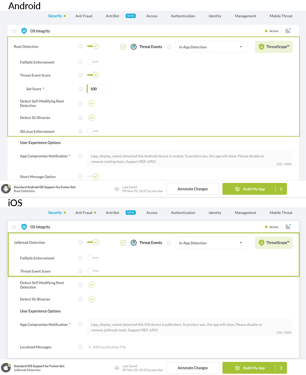 Using Threat-Events™ and Threat-Scores™ in React Native Apps is different between iOS and Android.
