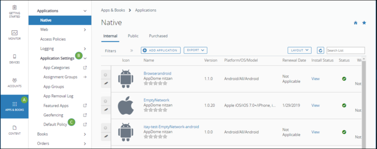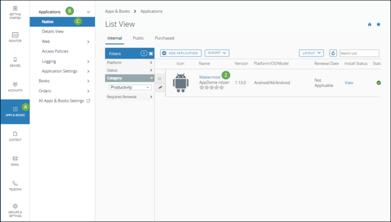 2. Go to AApps & Books –> B. Applications –> C. Native