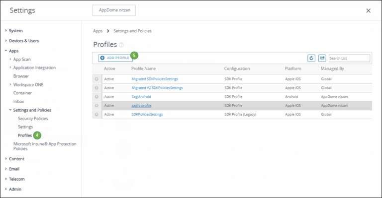 Apply an SDK Profile to an App in VMWare Workspace ONE (AirWatch) UEM