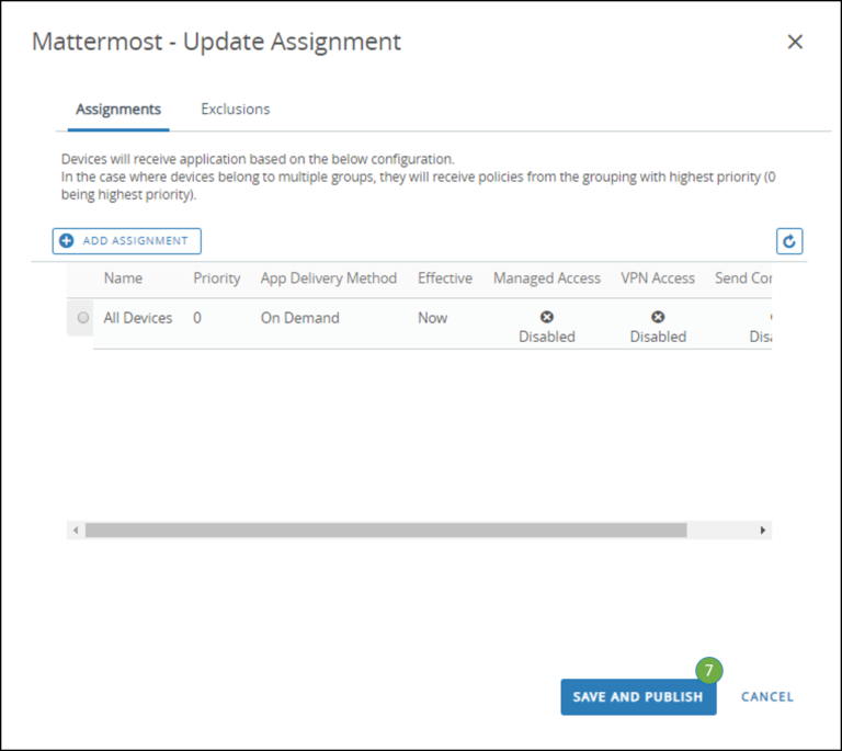 7. If you don’t want to change the assignment, click Save an Publish. Otherwise, you can update the app’s assignment.
