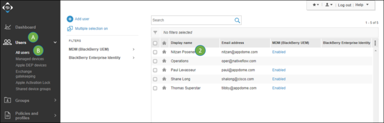 1. Click A. Users –> B. All Users.
