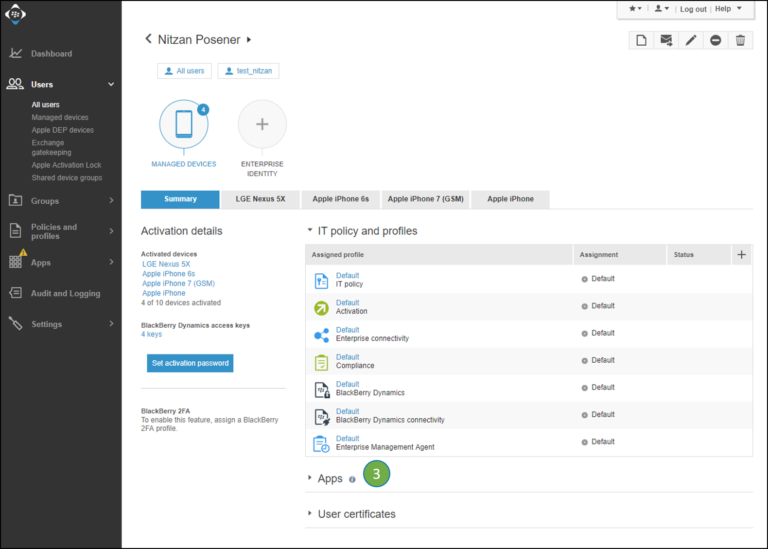 The Profile is now assigned to the user or the user group. It will govern apps fused with the BlackBerry Dynamic SDK assigned to the users and installed on the device.