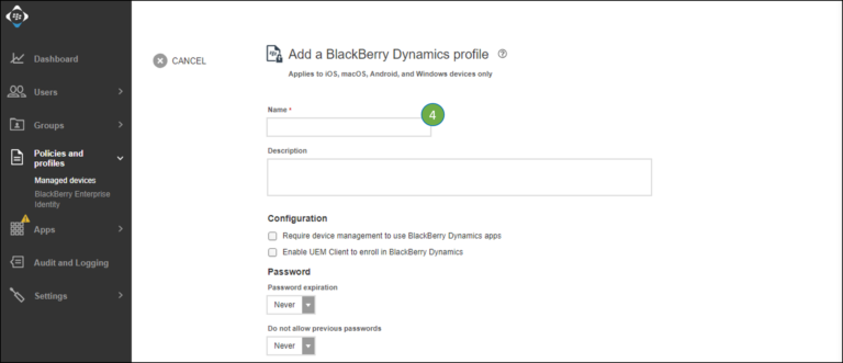 Create a BlackBerry Dynamic profile