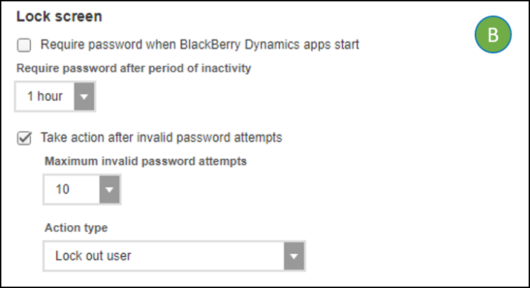 A BlackBerry Dynamic Profile manages the SDK’s security features and can be assigned to users and user groups.