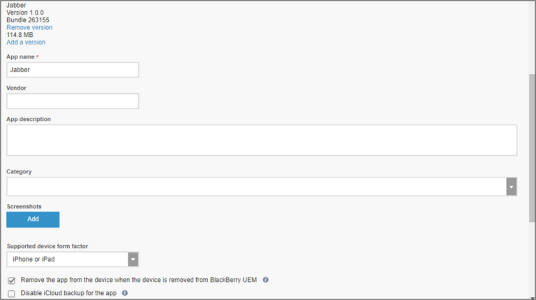 Integrating the BlackBerry SDK into mobile apps enables you to leverage BlackBerry UEM’s EMM features to protect and manage the app’s deployment and behavior. Once you Deploy Mobile Apps integrated with BlackBerry to BlackBerry UEM, they can be deployed selectively and managed with MobileIron’s policies. This Knowledge Base article covers the steps to publish secure enterprise apps built with BlackBerry SDK.