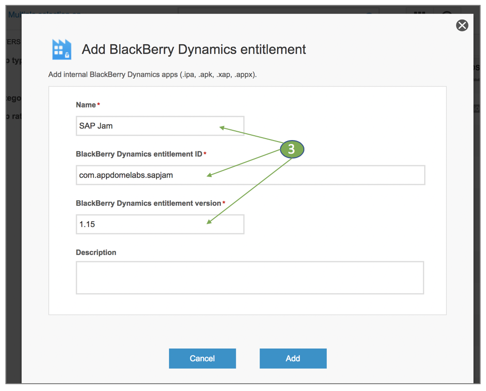 Once you have used Appdome to integrate the SAP Jam app to the BlackBerry Dynamics EMM SDK, you can add the app to the BlackBerry Management Console (UEM) as a BlackBerry Entitlements app.