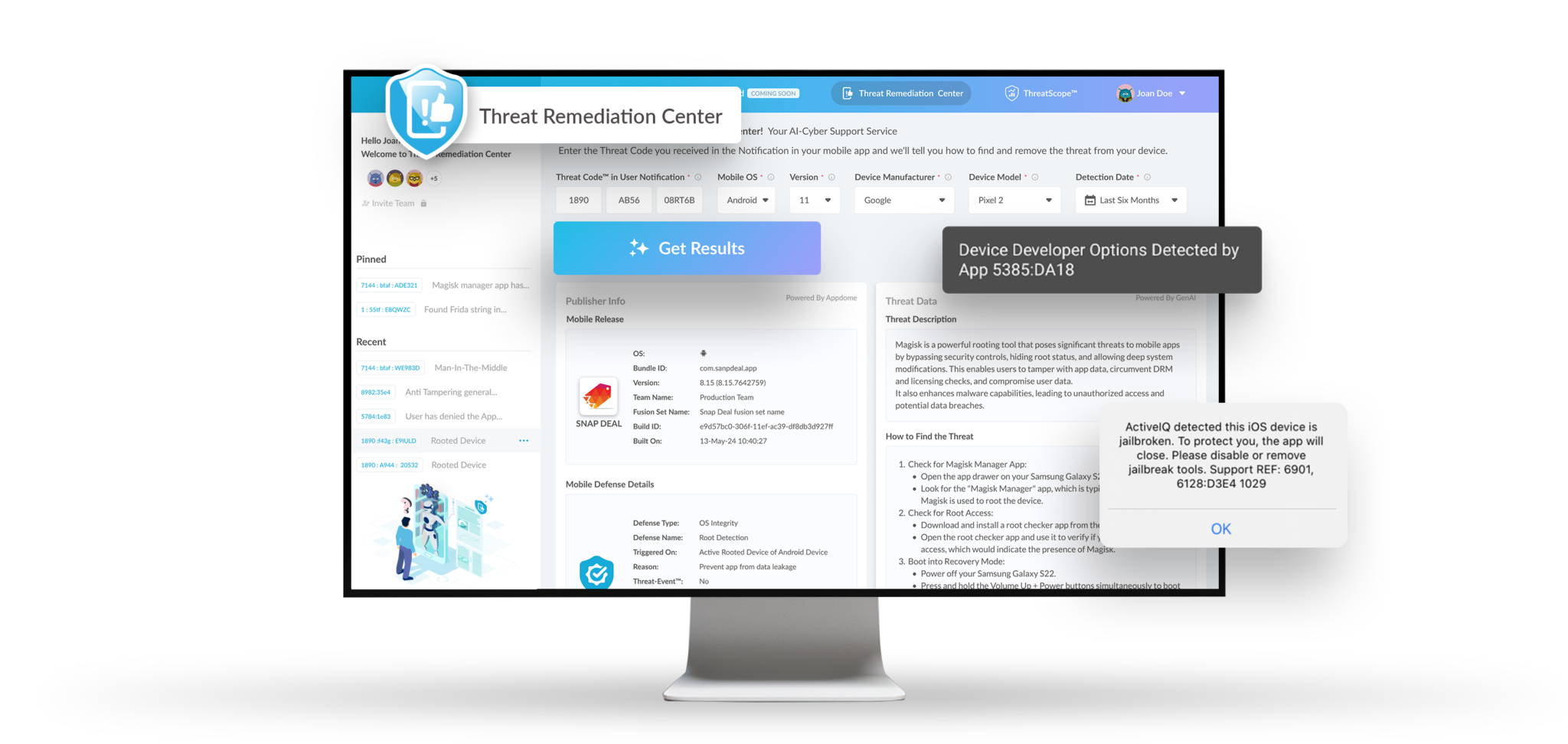 When cyber attacks and threats emerge on end-users’ mobile devices, don’t lock them out. Instead, use Appdome’s Threat Remediation Centerâ„¢ to help mobile end users understand, find, and remove mobile malware, spyware, and other threats on their Android and iOS devices with ease. Appdome’s Generative AI-powered Threat Remediation Agentâ„¢ supports millions of mobile end-user customers and employees simultaneously, identifies mobile threats and attacks on Android & iOS devices, and guides users through the threat remediation process quickly and efficiently.Â